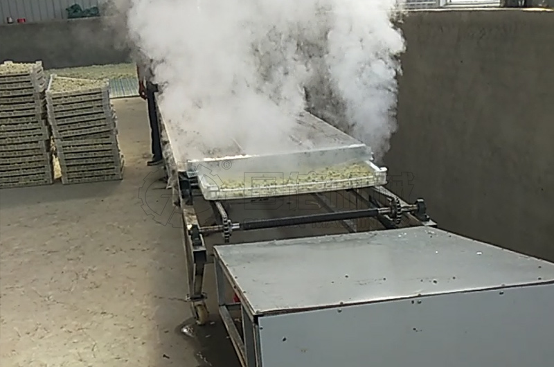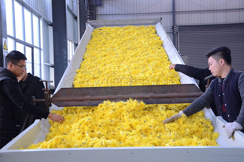 菊花烘干前,要先進(jìn)行機(jī)械殺青。機(jī)械殺青包括蒸汽殺青和微波殺青兩種方式。