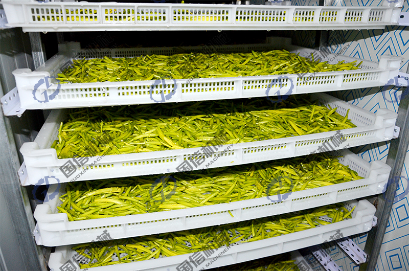 公司生產的空氣能黃花菜烘干房是一種以空氣能熱泵為主機,以電作為熱源,烘干后產品品質很好且無污染物排放。使用空氣能烘干機烘干黃花菜不僅免受污染與霉變的困擾,而且設備智能化程度高,操作簡單方便,無需專人看管。使用熱泵干燥物料成為國家倡導的一種節能型干燥方式。黃花菜烘干房同時具有殺青功能,由于黃花菜在烘干前必須先進行殺青,因此才能達到護色的效果,所以在選擇設備時必須選擇具有殺青功能的烘干設備,有的烘干房不具有這種功能,而我們國信生產的黃花菜烘干房就有這種功能,希望需要的朋友在選擇黃花菜烘干房時要慎重選擇。