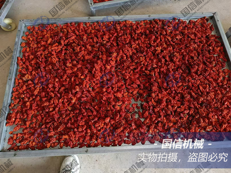 1.堆放厚度:在使用烘干機烘干辣椒的過程中,要注意辣椒的堆放厚度,建議辣椒的堆放厚度為20-25毫米左右即可。辣椒堆放太薄:雖然透氣性好,風阻小,有利于熱交換,但會導致辣椒與熱空氣的接觸時間縮短,從而導致熱利用率降低。辣椒堆放太厚:則會使熱風流通阻力增大,熱空氣無法穿透物層,導致辣椒烘干效果較差甚至出現無法烘干的問題。