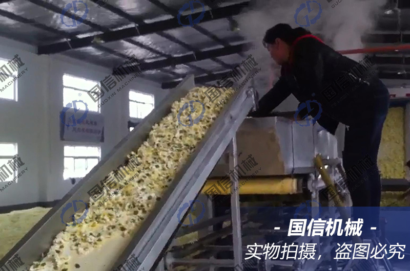 菊花殺青機是菊花烘干的前端處理,可以根據(jù)產量大小來進行配套選型。