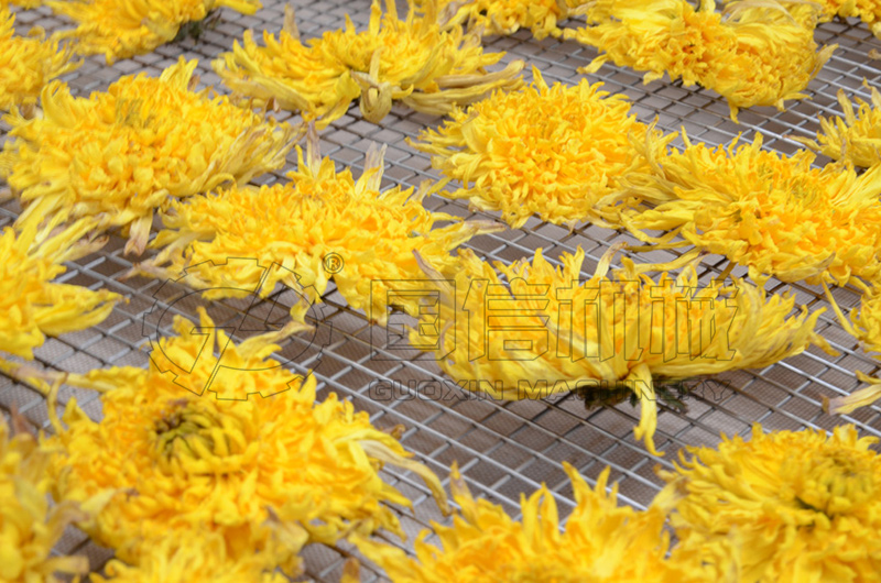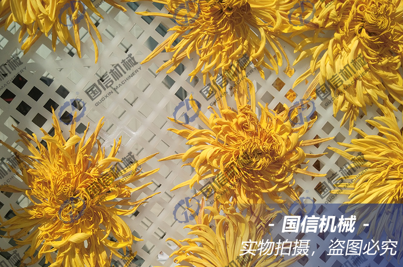 (部分菊花需要殺青階段:設置溫度65℃~70℃,時長2~3小時,如果需要,可以在進料前在鮮菊花上噴灑少量清水,殺青效果更好。)