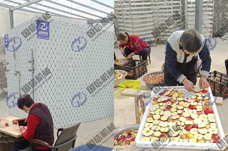 空氣能水果烘干房的工作原理是:通過空氣能熱泵提供穩(wěn)定熱量,然后送入烘干房內(nèi),在烘干房內(nèi)的循環(huán)風(fēng)機(jī)作用下,對擺放在推車和托盤上的水果進(jìn)行烘干作業(yè)。這種水果熱泵烘干房也是根據(jù)用戶的產(chǎn)量決定,可以實現(xiàn)每天烘干處理新鮮水果兩百公斤到3噸左右不等的產(chǎn)量需求。